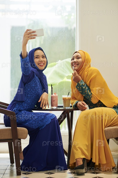 Мусульманские женщины фотографируют в кафе