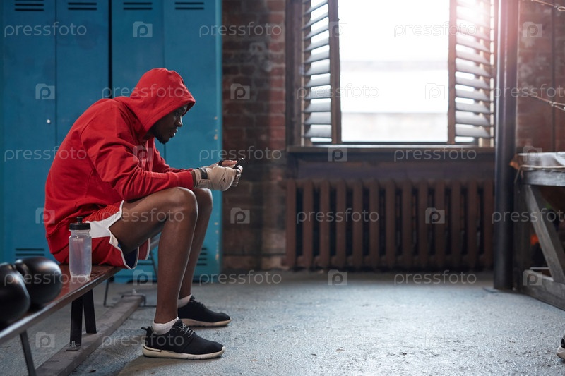 Боксер сидит в раздевалке