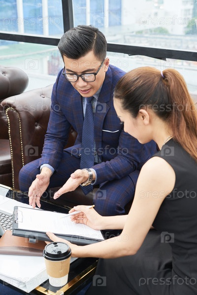 Бизнесмены обсуждают документ