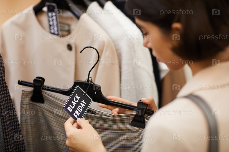 Женщина, покупающая одежду на распродаже