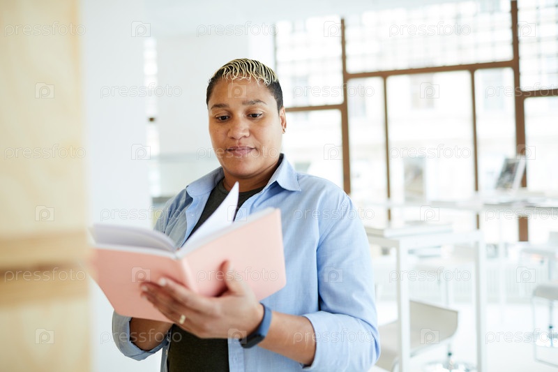Портли женщина в книжном магазине