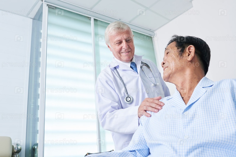 Врач общей практики хлопает по плечу старшему пациенту