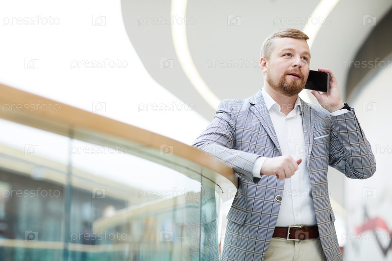 Загруженный предприниматель разговаривает по телефону