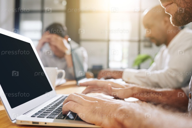 Бородатый бизнесмен, работающий на ноутбуке