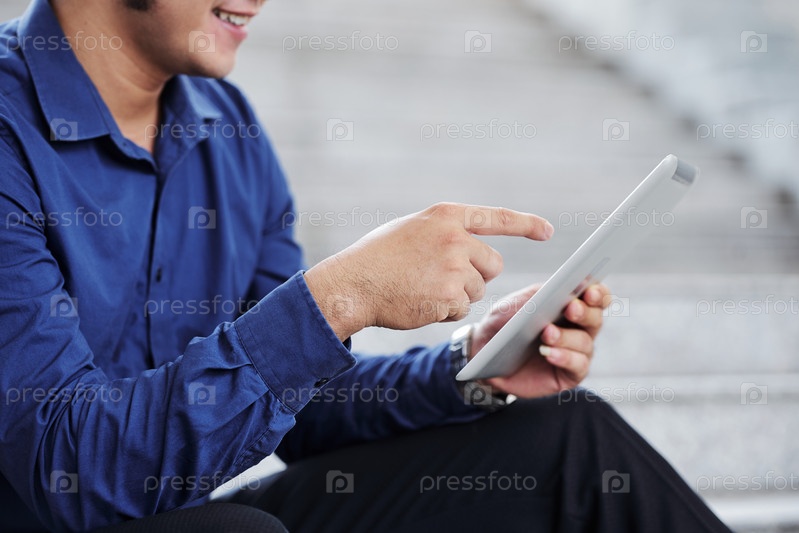 Бизнесмен использует новое приложение на цифровом талете