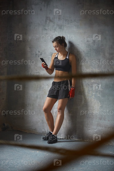 Жесткая женщина, использующая смартфон