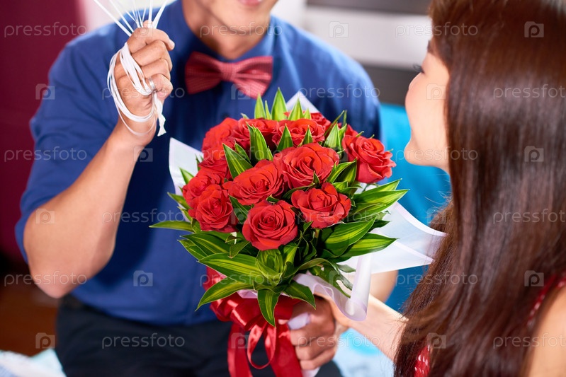 Мужчина дарит букет женщине
