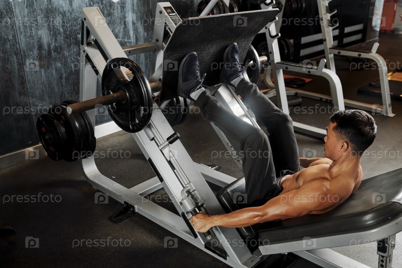 Тренировка спортсмена на пресс-машине для ног