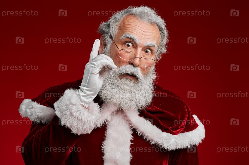 Удивленный Санта-Клаус на красном