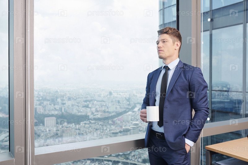 Вдумчивый бизнесмен с чашечкой кофе