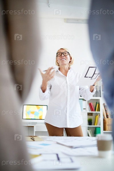 Зрелая женщина объясняет дизайн