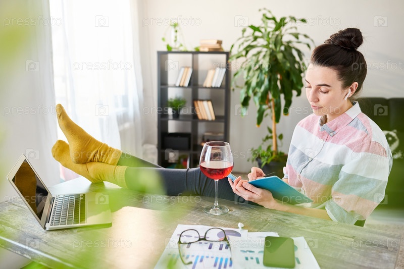 Молодая женщина отдыхает на рабочем месте