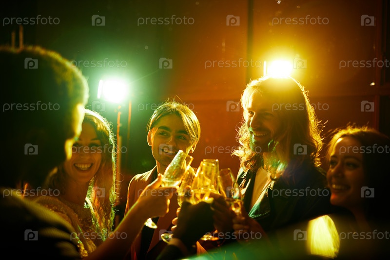 Смешные друзья пьют шампанское на вечеринке