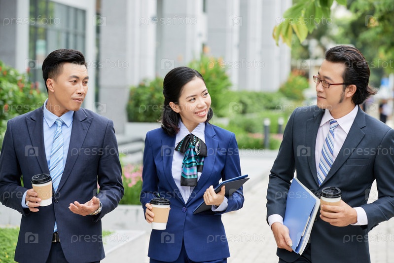 Коллеги по бизнесу, гуляющие по городу