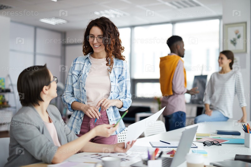 Креативная деловая женщина, работающая в офисе