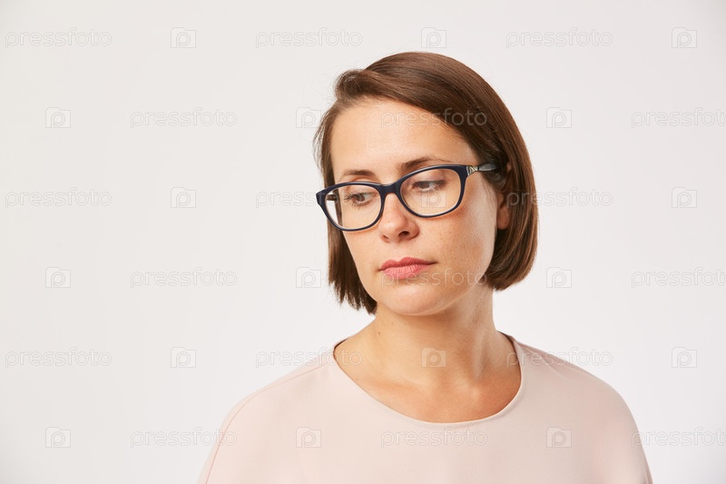 Печальная женщина в очках