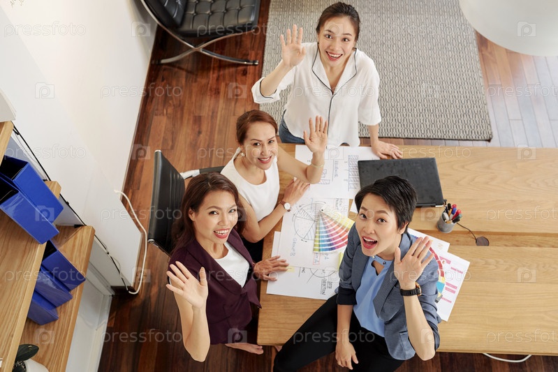 Счастливая группа дизайнеров, работающих в офисе