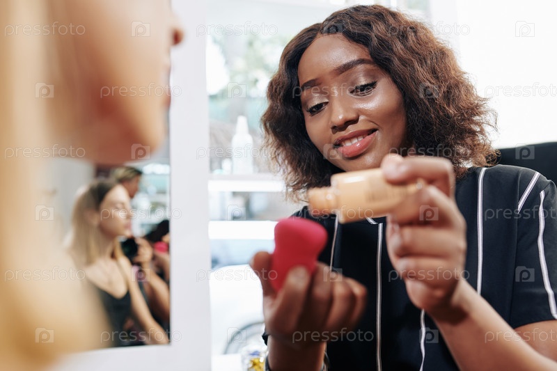 Макияж-художник, наносящий жидкий фундамент