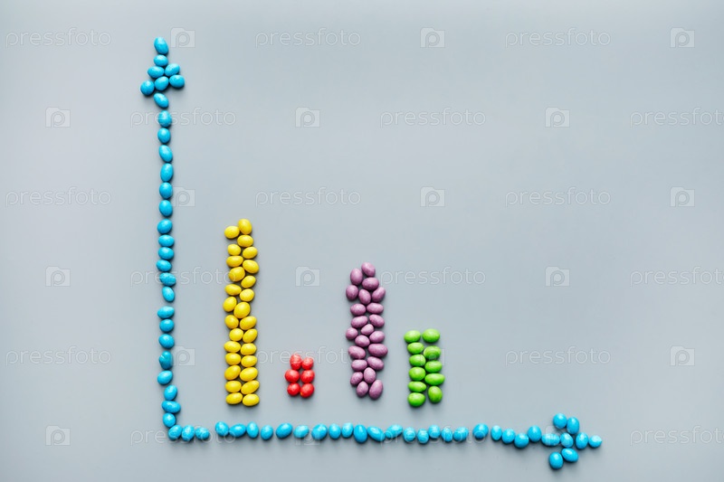 Финансовый график со штрихами разных размеров, собранными из красочных конфет