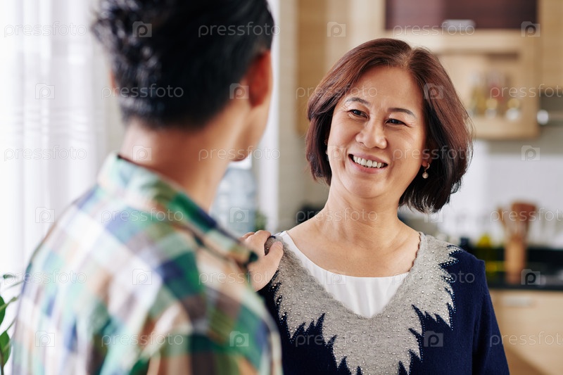 Гордая мать смотрит на сына