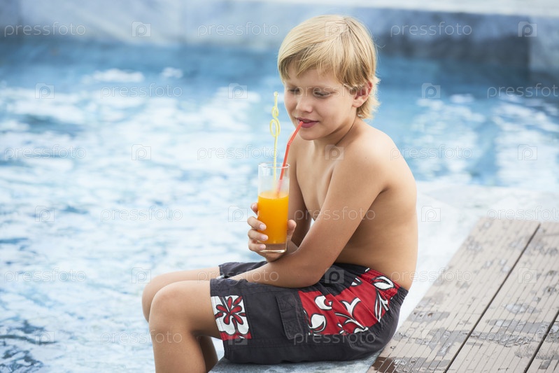 Мальчик отдыхает у бассейна