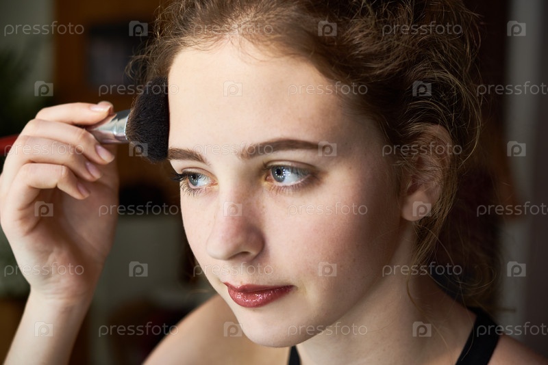 Женщина, использующая кисть для макияжа