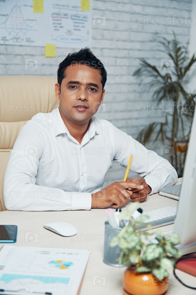 Мужчина-руководитель сидит на своем рабочем месте