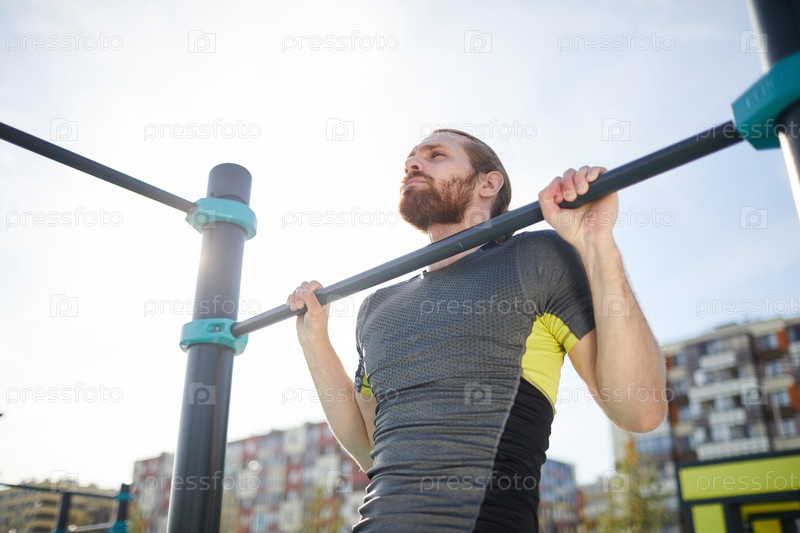 Бородатый парень висит на открытом баре