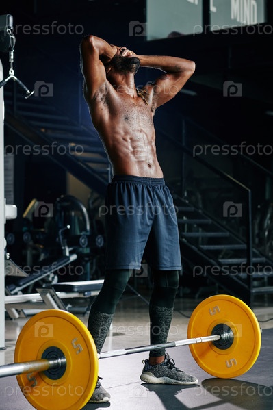 Счастливый спортсмен после подъема штанги