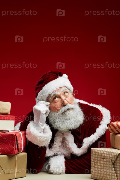 Пенсивный Санта-Клаус на красном