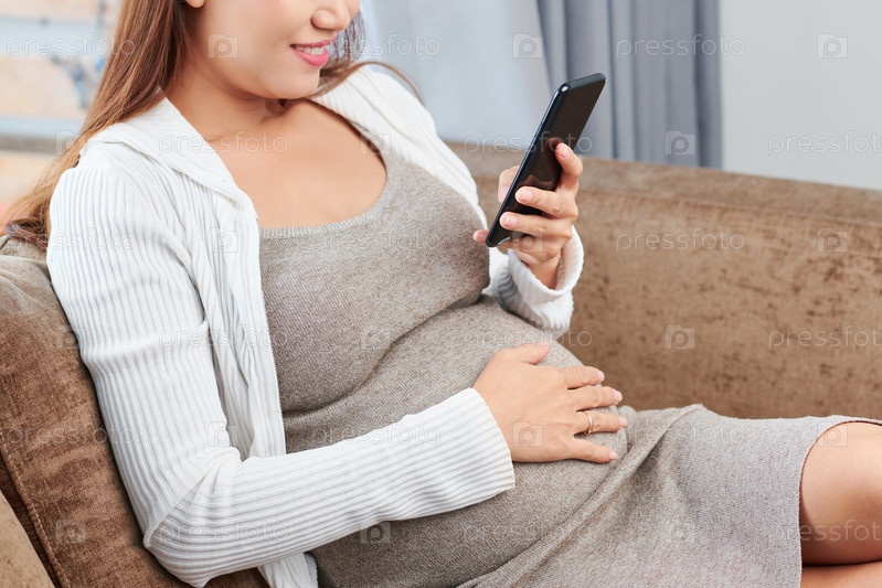 Беременная женщина проверяет свой телефон