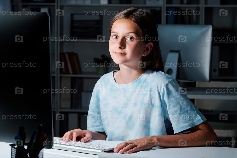 Милая студентка смотрит на тебя, готовясь к семинару поздно вечером