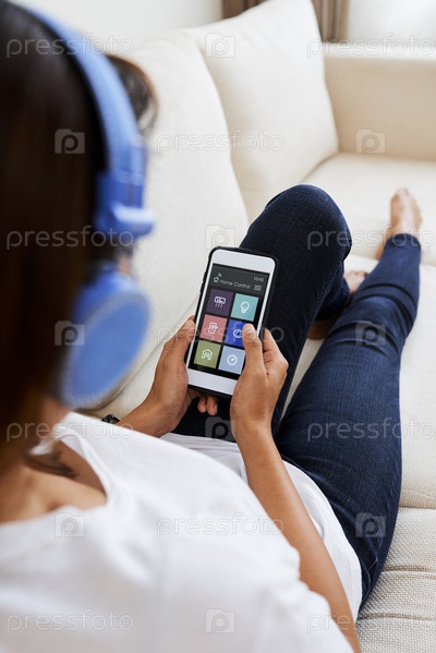 Женщина, использующая приложение домашнего управления