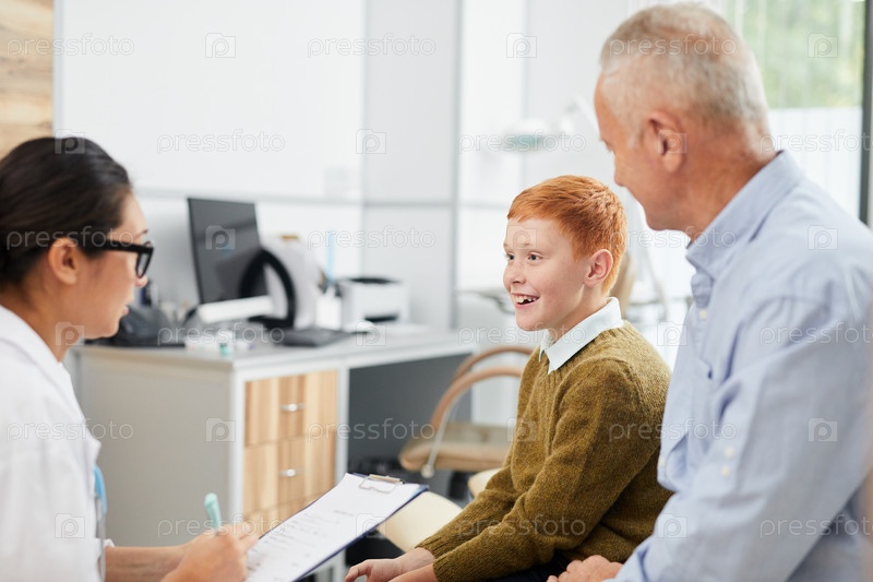 Милый мальчик улыбается медсестре