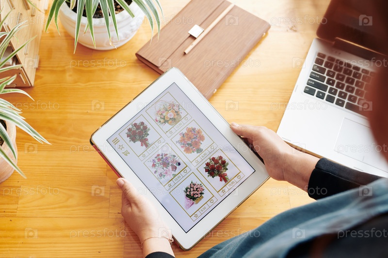 Женщина заказывает букет онлайн