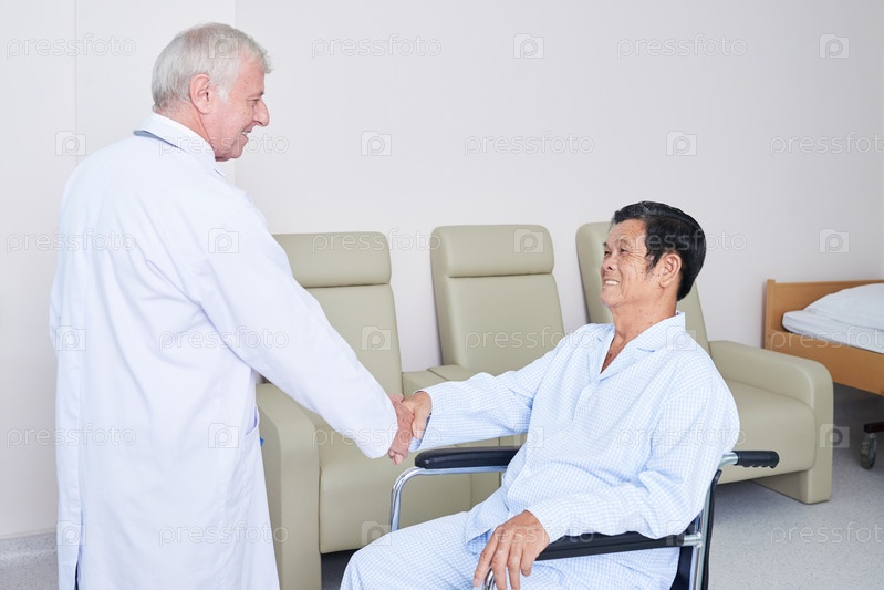 Врач приветствует старшего вьетнамского пациента