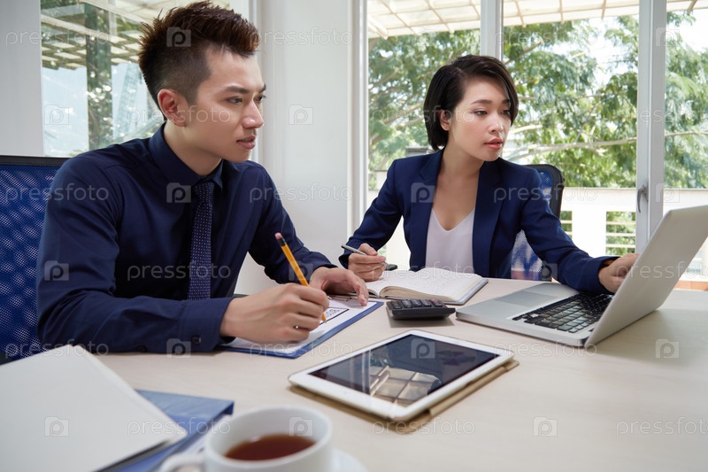 Бизнес-партнеры, работающие вместе в офисе