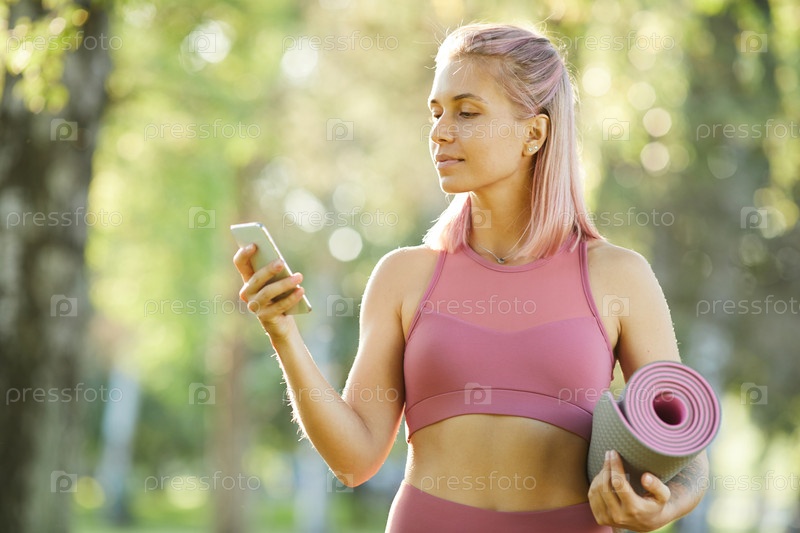 Спортивная женщина, использующая телефон