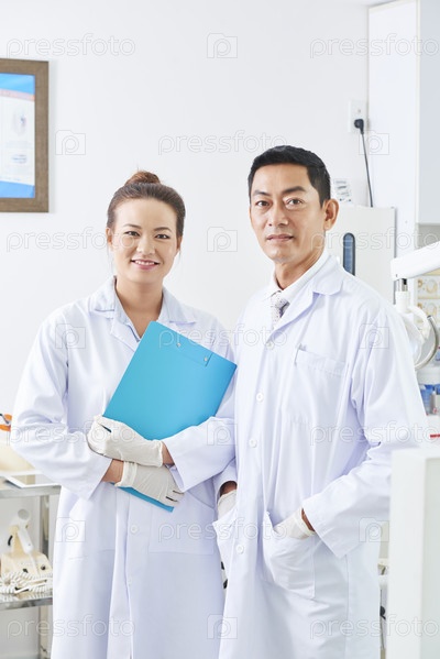 Врач с медсестрой, стоящей в кабинете