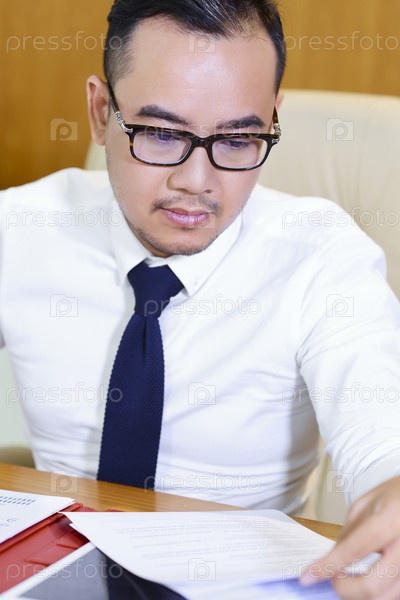 Бизнесмен анализирующий отчет
