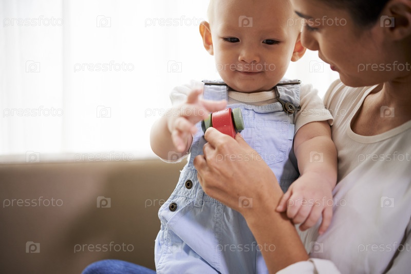 Мать и ребенок играют с машиной