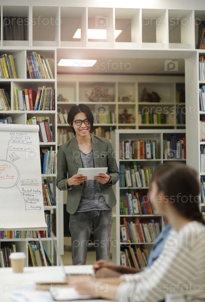 Студент, представляющий свой доклад в университете