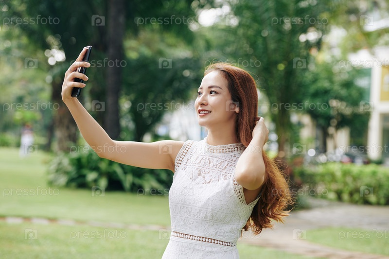 Красивая девушка, делающая селфи