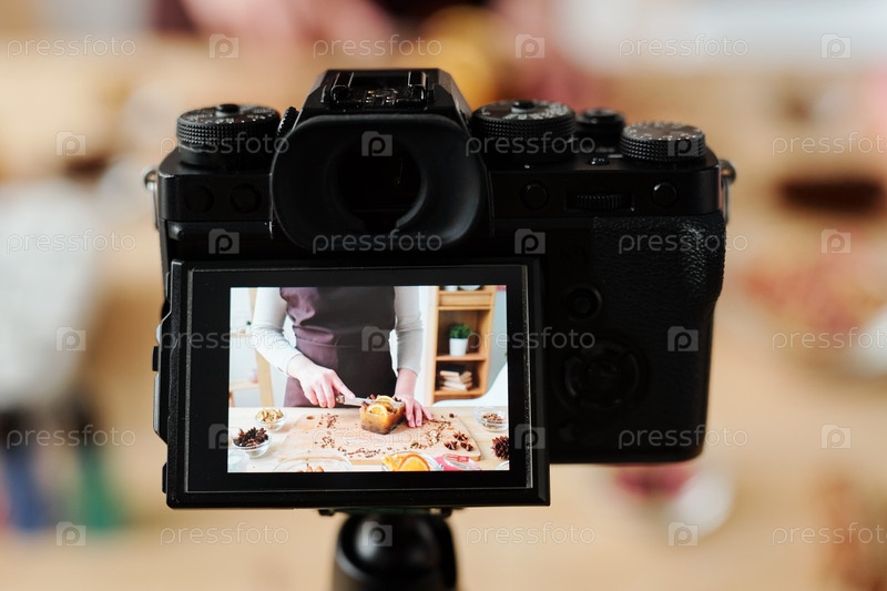 Ремесленница в фотоаппарате записывает видео мастер-класса по изготовлению ручного мыла