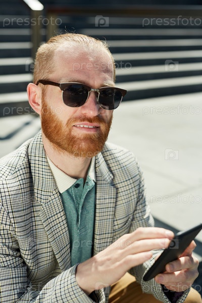 Хипстер-мужчина, использующий телефон для работы
