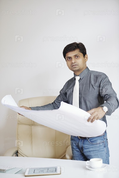 Архитектор, работающий с чертежом