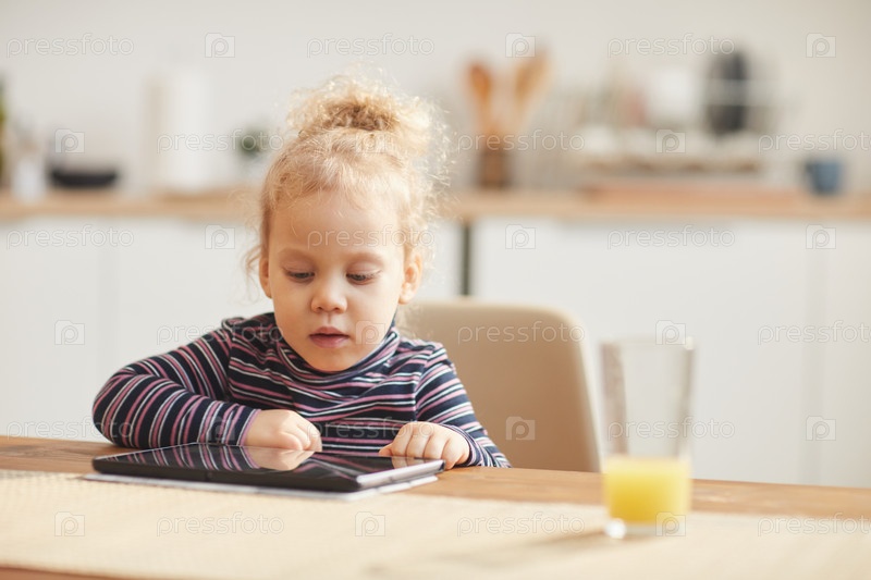 Милая девочка, использующая цифровой планшет