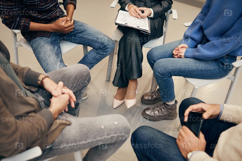 Люди, сидящие в кругу во время терапии