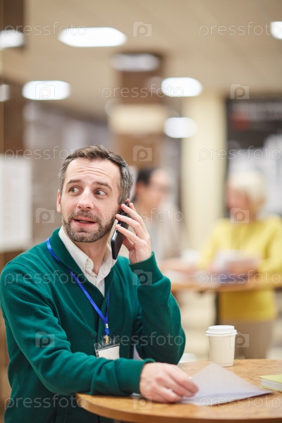 Участник конференции разговаривает по телефону