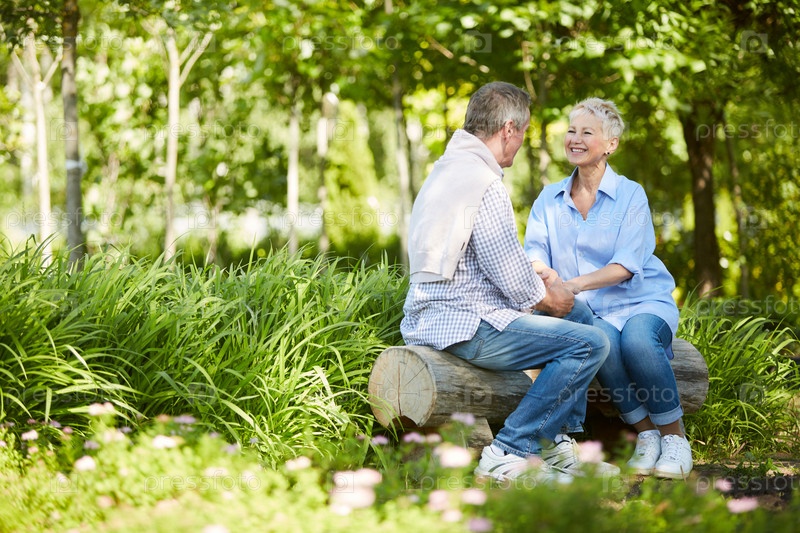 Старшая пара наслаждается свиданием в парке
